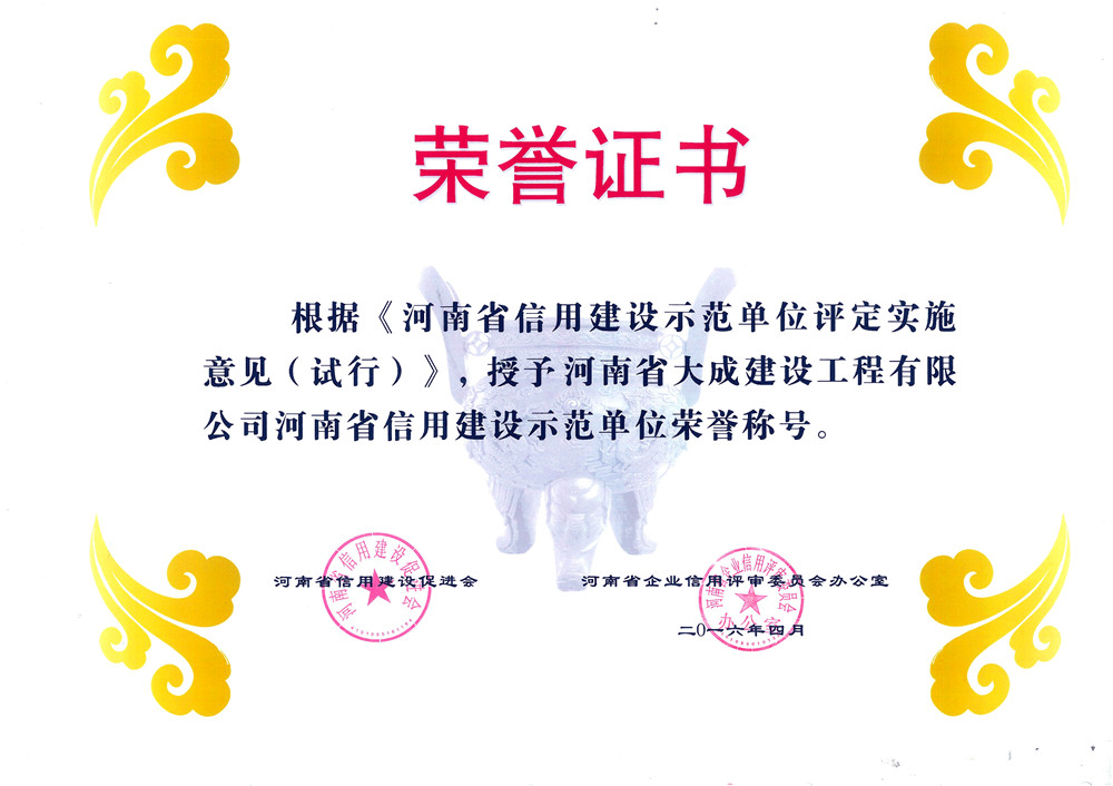 "中國建筑業最具成長性百強企業"、"全國優秀施工企業"、"河南省建筑業綜合實力前20強"、全國建筑業精品網站