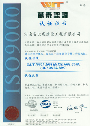 ISO國際認證證書