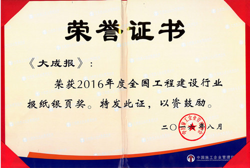 日前,從中國施工企業管理協會官網獲悉,由該協會組織開展的2016年度全國工程建設行業“金銀頁”報刊評選結果揭曉,我集團公司主辦的《大成報》被評為本年度“銀頁獎”。